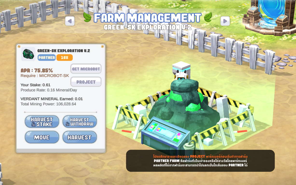 เลือก ซื้อ และรับ MicroBot ซึ่งเปรียบเสมือน LP-tokens ที่ใช้สำหรับการทำฟาร์ม ทีนี้ ผู้เล่นก็สามารถเริ่มทำฟาร์มโดยใช้ MicroBot ที่ได้มาแล้ว